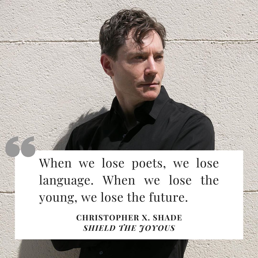 The poems in Christopher X. Shade’s book Shield the Joyous “engage in magical thinking, exuding wonderment toward death,” says poet Joseph O. Legaspi. This follows Christopher’s 2019 novel The Good Mother of Marseille, its search through turbulent Marseille for belonging. Shield the Joyous is deeply touching in its vulnerability and often entertaining. Christopher lives in New York City and is co-founder and co-editor of Cagibi, at cagibilit.com, a journal of poetry and prose. Raised in the South, he now lives in New York City.